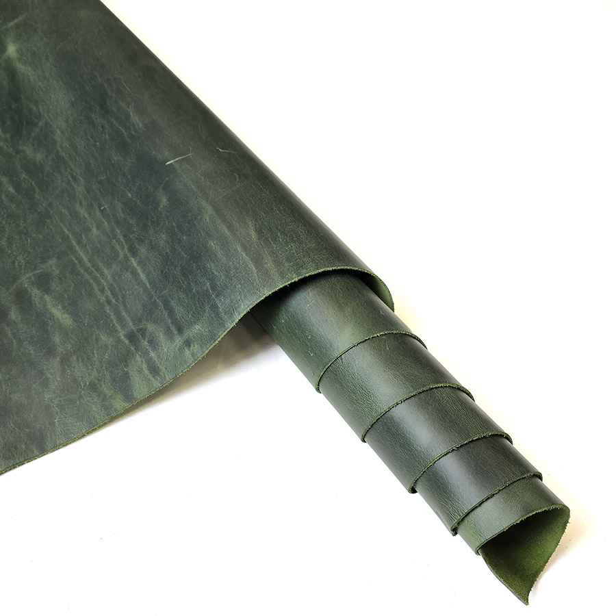 HOVĚZÍ KŮŽE / TŘÍSLOČINĚNÁ HLAZENICE – OLIVOVÁ – CRAZY HORSE – 1,8 – 2,0 mm
