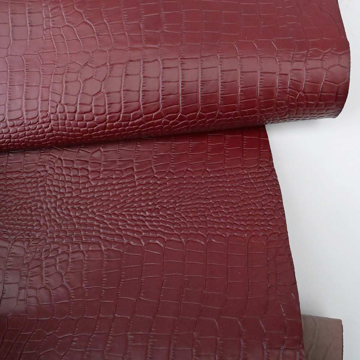 HOVĚZÍ KŮŽE / TŘÍSLOČINĚNÁ HLAZENICE – VÍNOVÁ / KROKODILNÍ IMITACE