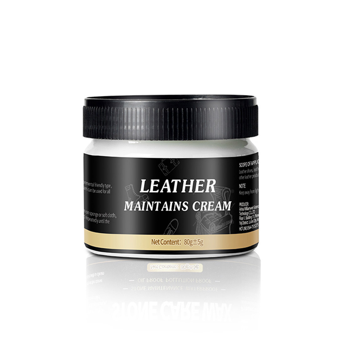 Krém na kůži. Zabraňuje vysychání a praskání kůže, prodlužuje životnost kůže, určený k ochraně kožených výrobků.