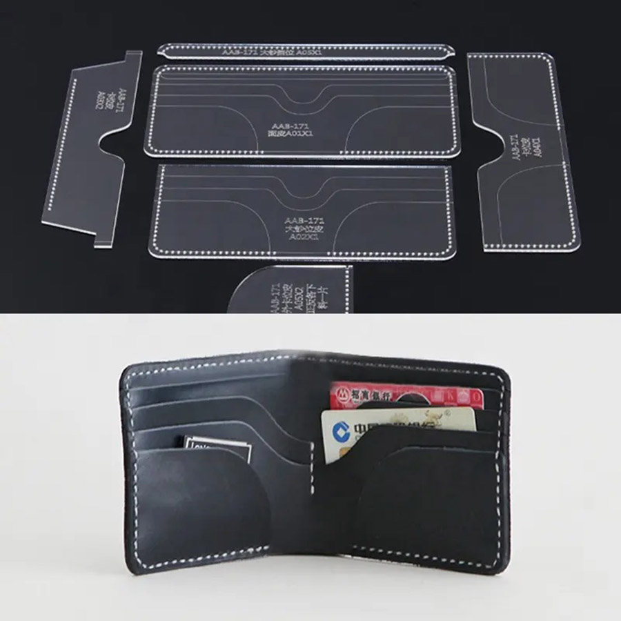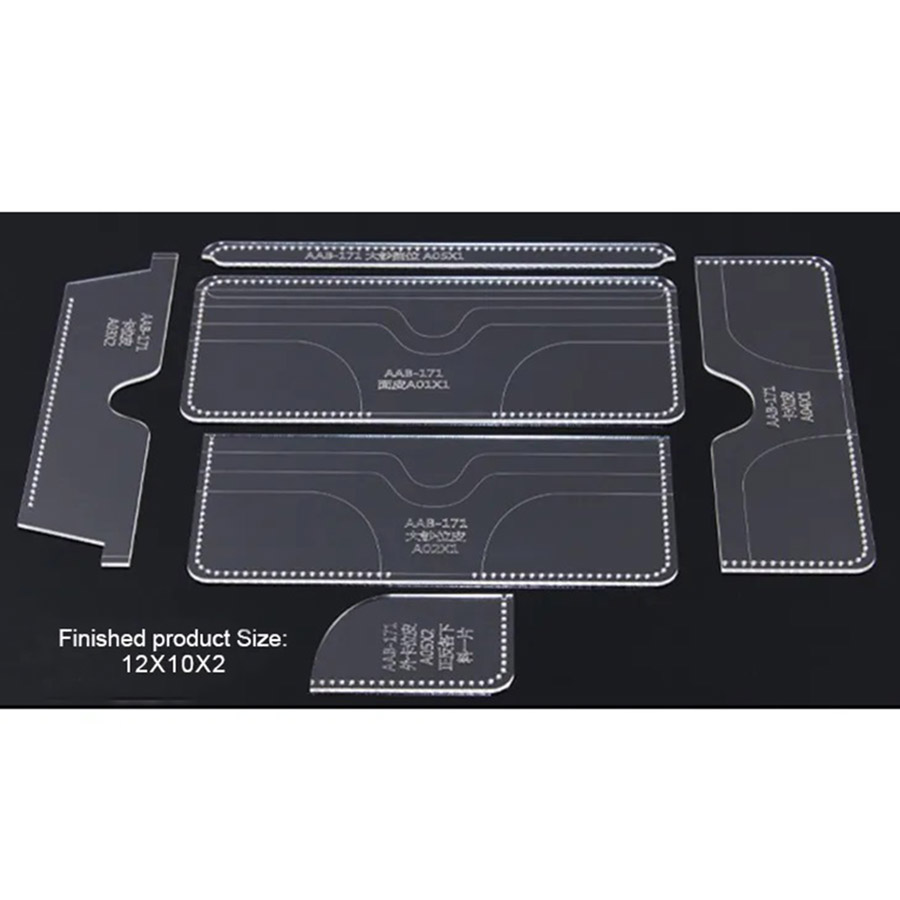 Transparentní průhledná akrylová šablona může být použita k vytvoření peněženky.